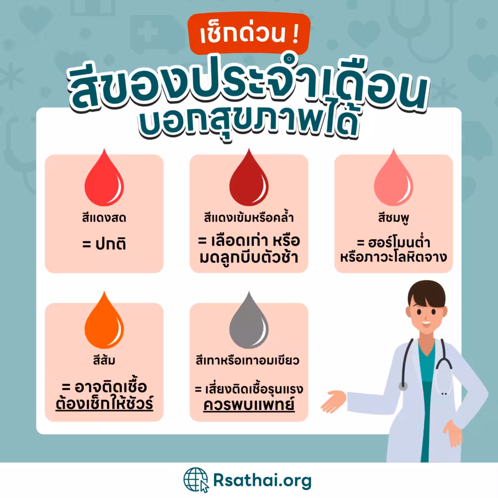 เคยสังเกตไหมว่าประจำเดือนของคุณมีสีแตกต่างกันในแต่ละรอบ? จริง ๆ แล้ว สีของประจำเดือนสามารถบอกถึงสุขภาพของคุณได้! มาดูกันว่าสีแต่ละแบบหมายถึงอะไร และเมื่อไหร่ที่ควรระวัง