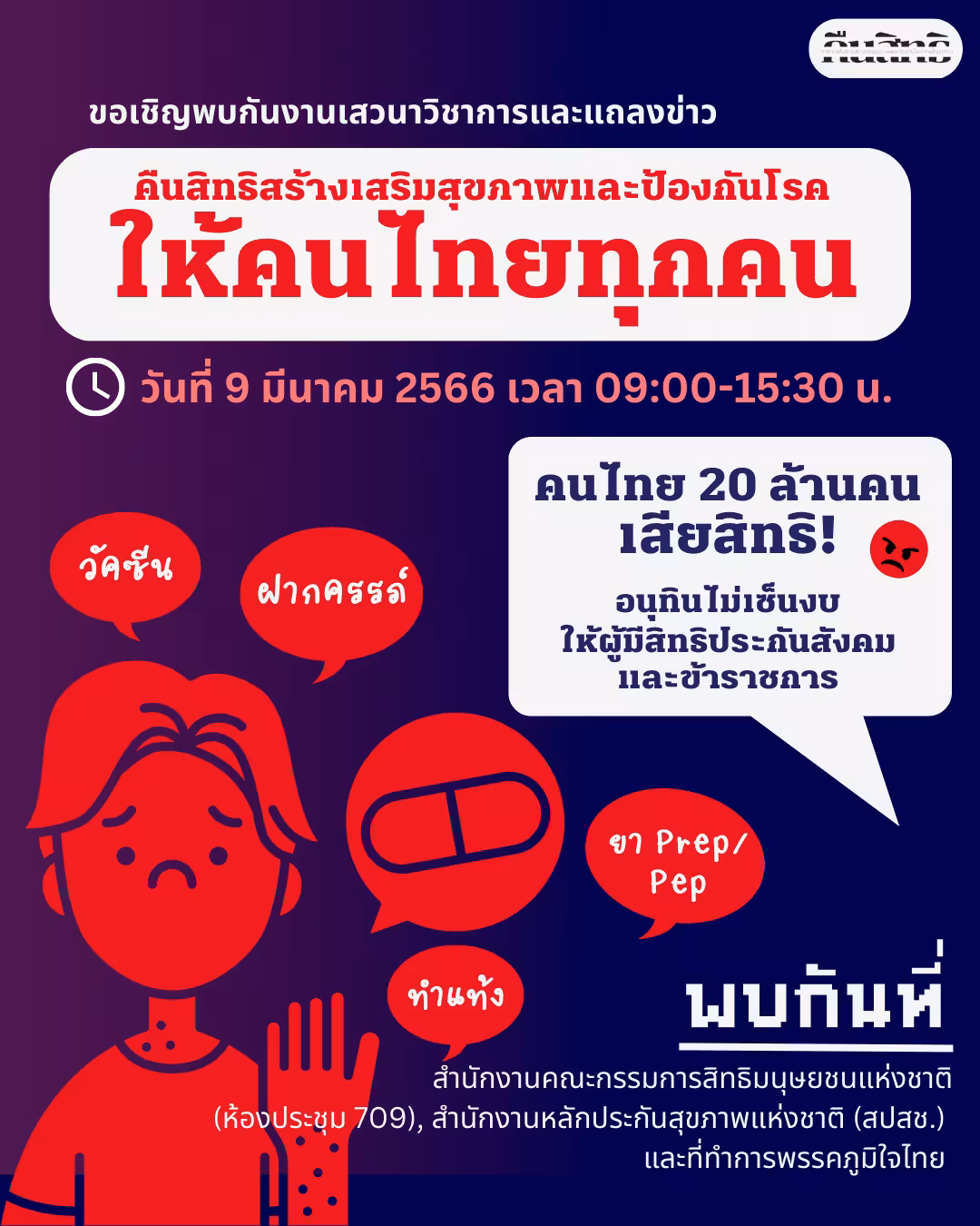 รวมข่าว ทวงคืนสิทธิสร้างเสริมสุขภาพและป้องกันโรคให้ครอบคลุมคนไทยทุกคน (1) ภาคีทวงคืนสิทธิสร้าง… มีนาคม 6, 2023 RSATHAI