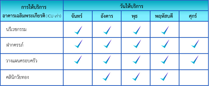 โทรศัพท์: 0 5553 1229 ต่อ 1132 คลินิกนรีเวชกรรม