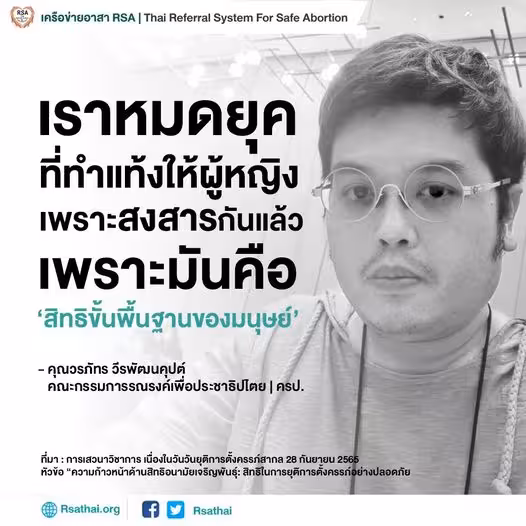 ข้อมูลอัพเดทบน Facebook Fanpage “เราหมดยุคที่ #ทำแท้ง ให้ผู้หญิงเพราะสงสารกันแล้ว เพราะมันคือสิทธิขั้นพื้นฐานของ… “เราหมดยุคที่ #ทำแท้… กันยายน 28, 2022 RSATHAI
